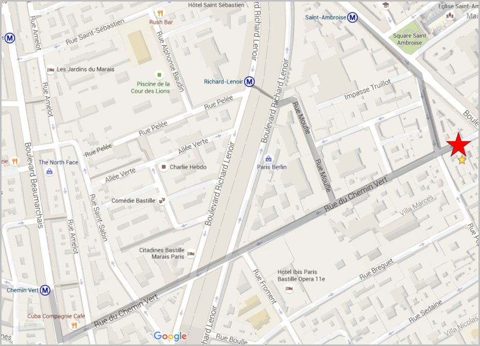 Boulevard Richard Lenoir ; between streets “rue Amelot” and “rue Saint-Sabin” – Métro : Bastille